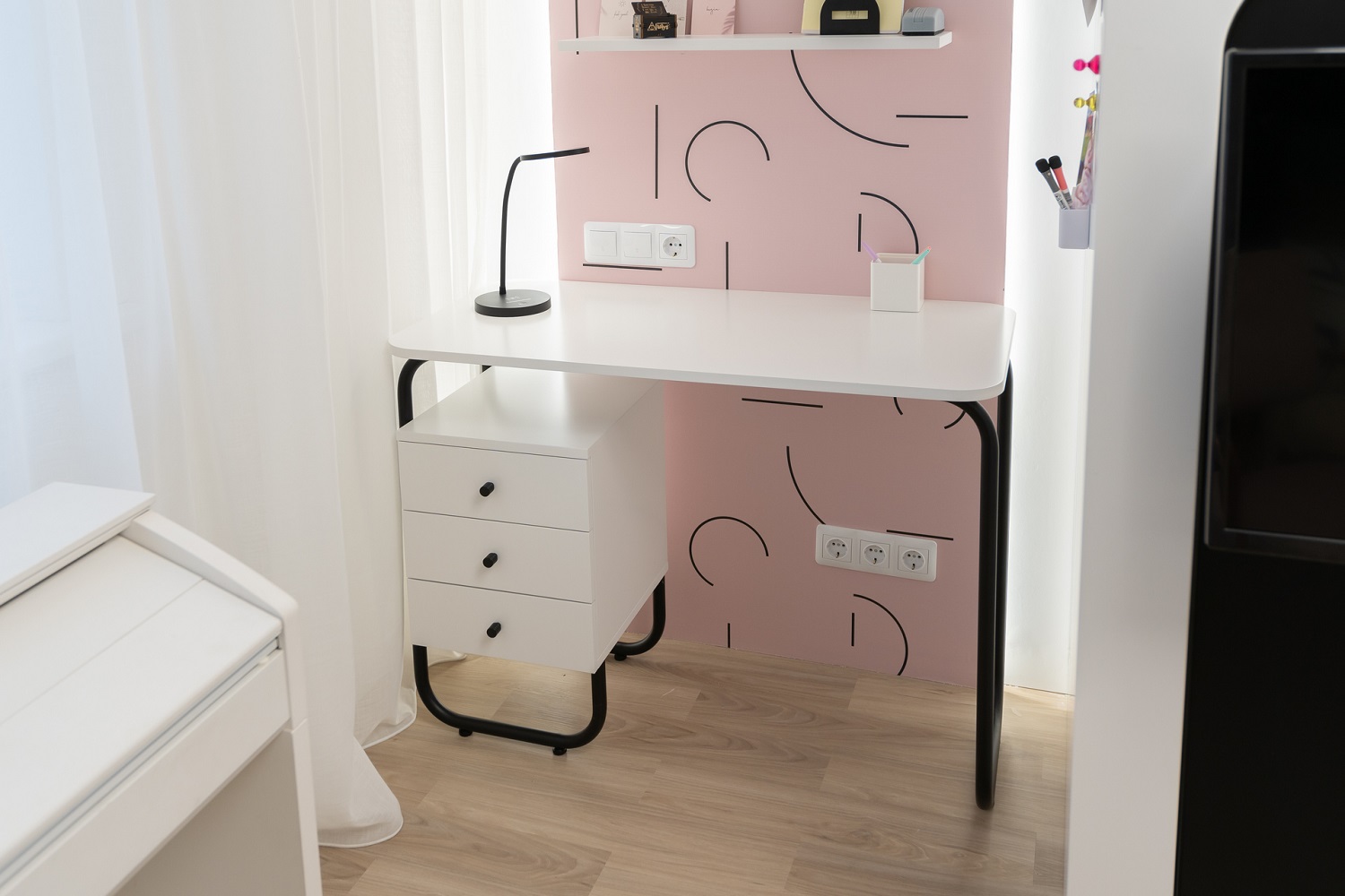 В детской применили интерьерную магию: разделили пространство на спальню, рабочую зону и гардеробную. Кстати, чулан, в котором жил Гарри Поттер, и знаменитые очки здесь тоже появились.